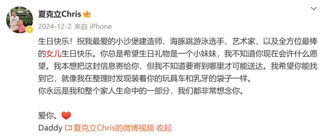 去年女儿生日的时候,夏克立发文为夏天庆生,说自己想给她寄一封信,但不知寄到哪里才能送达。