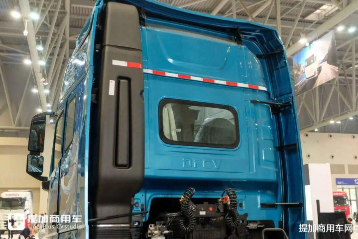 后视镜采用主镜与广角镜上下布局,外壳为一体式设计,有助于降低风阻,视觉上也更为整洁。更值得一提的是:其后视镜支架经过特殊优化,主镜与广角镜之间的连接部分更为纤细,大幅减少对驾驶员视野的遮挡,这看似微小的改进,正体现了新款天龙KL对安全与人机体验的双重追求。