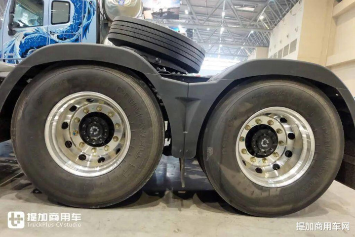 车辆采用6×4驱动形式,双后桥为DF173A型,提供2.56/2.69/2.87三种速比选择,并配备铝合金轮毂,兼顾轻量化与美观性